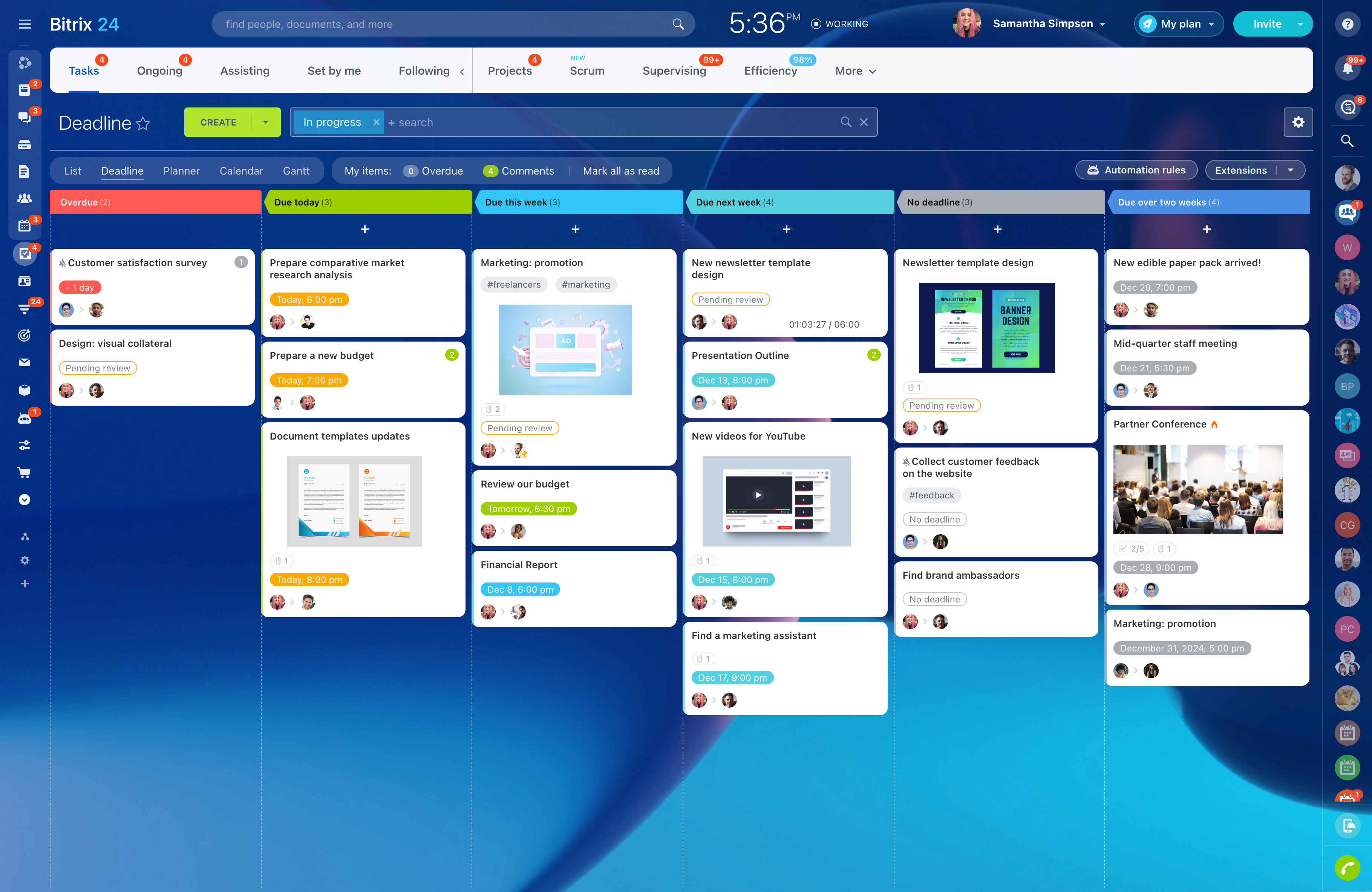 Bitrix24 es una plataforma de trabajo unificada que ofrece un conjunto completo de herramientas empresariales. Desde la gestión de CRM, tareas y proyectos hasta la colaboración y la automatización, Bitrix24 ayuda a las empresas a comunicarse, colaborar y optimizar sus flujos de trabajo eficientemente.